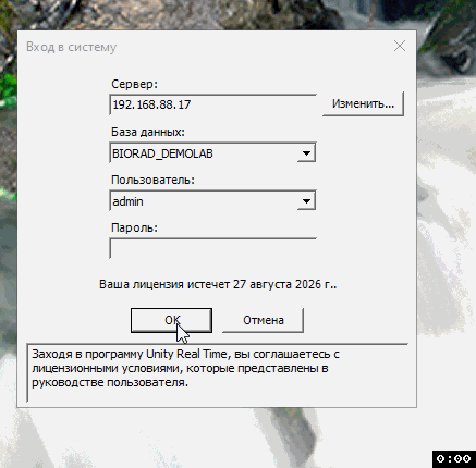 Если вы никогда не открывали Юнити, или у вас "слетел" сервер, спросите у поддержки Био-Рад имя сервера, логин, пароль и действуйте как на видео ниже (в этом примере адрес сервера 192.168.88.17):